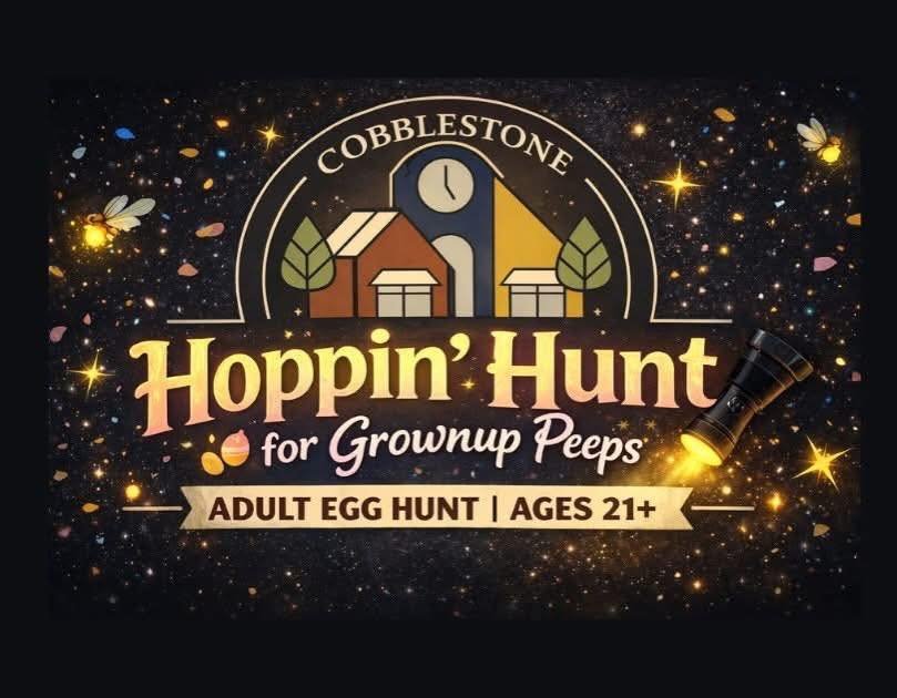 Hoppin’ Hunt for Grownup Peeps Cobblestone Village Adult Egg Hunt Who says egg hunts are just for kids? Not us.